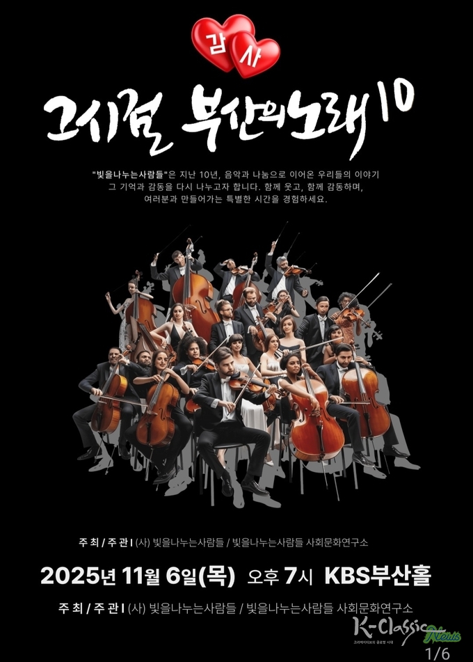 올해 10회를 맞은 이번 공연은 '빛을나누는사람들'이 걸어온 시간의 의미를 되새기며, 지역 예술계와 시민 사회의 자발적인 협력으로 완성된다. 무대에는 부산 출신 성악가, 오케스트라 단원, 청소년 합창단 등 다양한 세대와 계층이 함께 참여해 진정한 ‘나눔의 하모니’를 보여줄 예정이다.