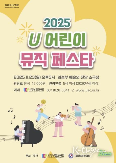 K-Classic News 기자 | (재)의정부문화재단은 경기 북부 문화 중심지로서 지역 내 클래식 영재를 발굴하고 육성하기 위한 'U 어린이 뮤직 페스타'를 오는 11.23. 의정부예술의전당 소극장에서 개최한다.
