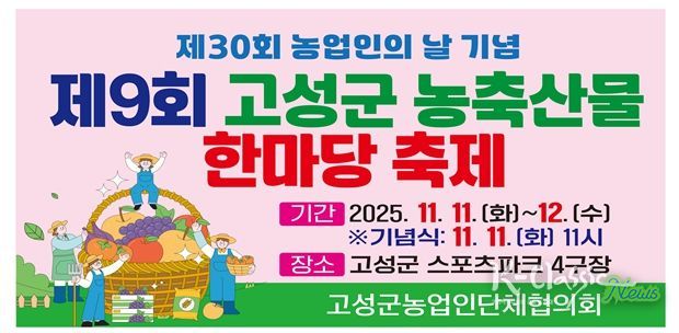 K-Classic News 기자 | 고성군은 오는 11월 11일부터 12일까지 고성군스포츠타운 4구장에서 ‘제30회 농업인의 날 기념, 제9회 고성군 농축산물 한마당 축제’를 개최한다.