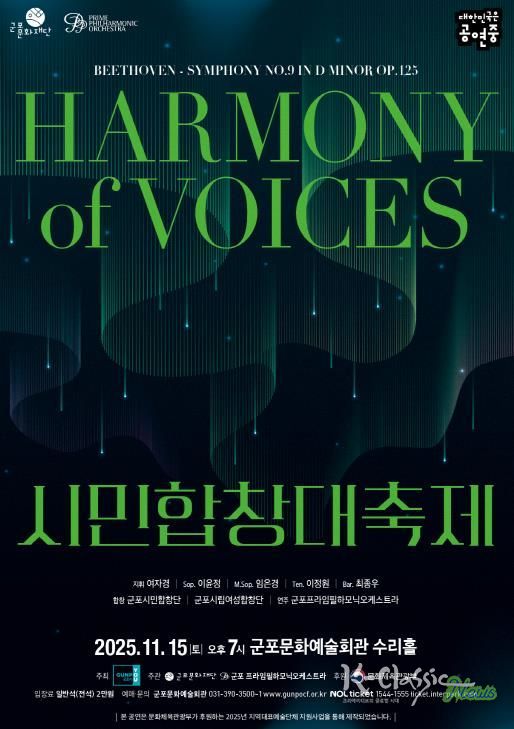 K-Classic News 기자 | 군포문화재단은 오는 11월 15일 오후 7시, 군포문화예술회관 수리홀에서 시민과 함께하는 대규모 클래식 공연 “2025 시민합창대축제”를 개최한다.