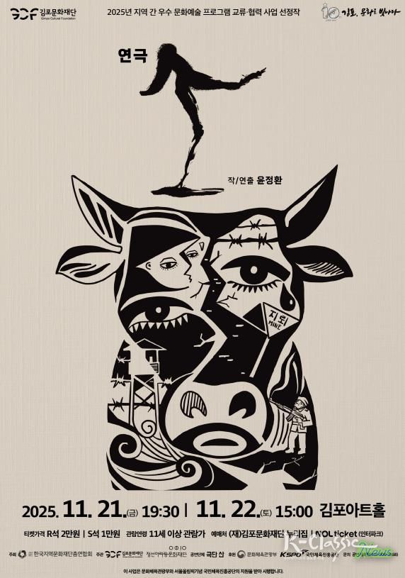K-Classic News 기자 | (재)김포문화재단은 오는 11월 21일부터 22일까지 이틀동안 김포아트홀에서 연극 '소' 공연을 개최한다고 밝혔다.