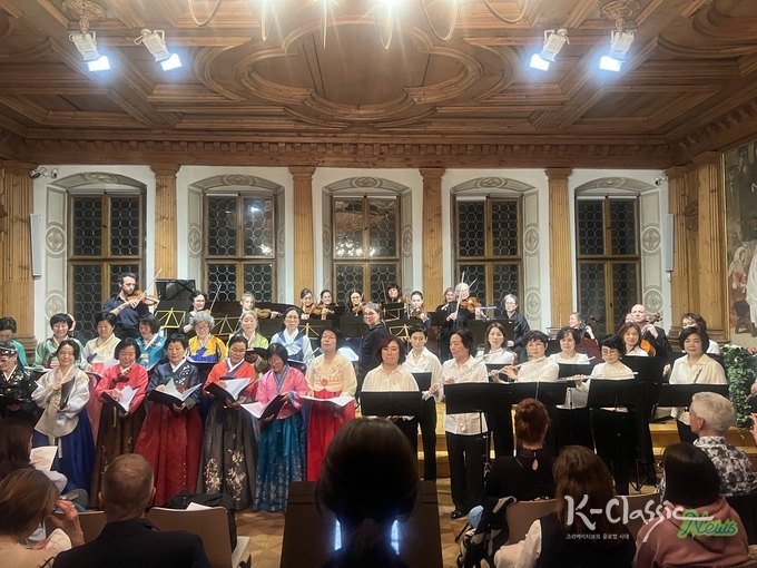 공연은 플루트 앙상블의 〈고향의 봄〉으로 문을 열었다. 세 파트로 다시 구성된 이 곡은 다성의 결을 차분히 펼치며, 먼 곳에서 온 사람들이 조심스레 건네는 첫 인사처럼 홀의 공기를 여몄다. 이어 형형색색 한복을 입은 합창단이 등장해 〈오나라〉와 타령을 잇자, 무대는 오래된 한국의 흙냄새와 드라마 속 서정이 뒤섞이는 장면으로 변했다. 그 화려함은 과장이 아니라, 자기 삶의 이야기를 정직하게 꺼내는 방식처럼 보였다. 그리고 아마추어 오케스트라 Alte Liebe가 바흐로 응답했다. 아직 매끈하게 정제되지 않은 소리였지만, 그 미세한 떨림이 오히려 환영의 마음을 더 선명하게 전했다. 환영이란 본래 완벽함에서 오는 것이 아니라, 진심이 먼저 도착하는 데서 비롯되기 때문이다.