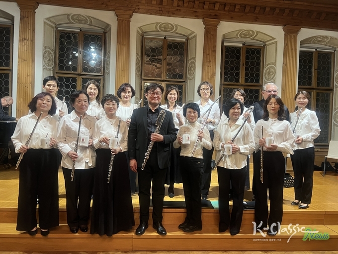 무대가 시작되기 전, 사회자(차소민, Birgit Abe)는 한국어와 독일어를 번갈아 사용하며 관객을 맞았다. 두 언어가 한 공간에서 서서히 겹쳐질 때, 이미 이날 음악회의 의의가 온전히 드러나고 있었다. 사회자는 한국에서 먼 길을 온 플루트 앙상블과, 오랜 시간 독일 사회의 이웃으로 살아온 아우크스부르크 여성합창단을 하나씩 소개했다. 이 합창단의 상당수는 파독 간호사로 독일에 삶을 뿌리내린 이들이다. 그리고 오늘 처음 공식 무대에 오르는 아마추어 스트링 오케스트라 Alte Liebe까지, 전문성과 비전문성이 서로를 갈라놓기보다 오히려 서로의 빈틈을 채워 하나의 울림을 만드는 순간이었다. 한국에서 온 연주자들, 독일에서 세월을 쌓아온 합창단, 이제 첫걸음을 내딛는 오케스트라. 이 세 단체가 만나는 자리가 바로 공연의 제목 ‘MUSIK VERBINDET’, 음악이 연결하는 힘의 증거였다.