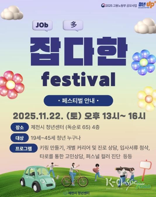K-Classic News 기자 | 제천시 청년센터는 취업 준비 청년을 위해 오는 11월 22일 ‘잡다(job多)한 페스티벌’을 개최한다.