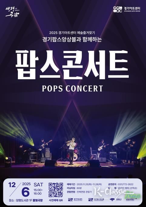 K-Classic News 기자 | 양평문화재단은 오는 12월 6일 오후 3시 물빛극장에서 2025년 시즌레퍼토리 ‘양평공감’의 열 번째 무대인 ‘경기아트센터 예술즐겨찾기’ '팝스 콘서트'를 선보인다.
