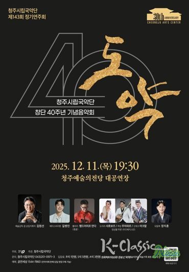 이번 공연은 올 한 해를 마무리하는 무대이자 청주시립국악단의 창단 40주년을 기념하는 뜻깊은 자리로 더욱 특별한 감동을 선사할 예정이다.