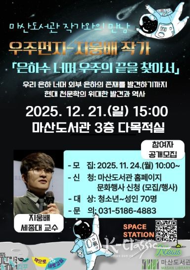 K-Classic News 기자 | 김포시 마산도서관은 오는 12월 21일 오후 3시, 지웅배 작가와의 만남 프로그램을 3층 다목적실에서 진행한다.