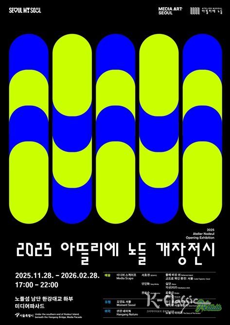 K-Classic News 기자 | 서울시는 한강 중심부 노들섬 남단 한강대교 하부에 공공 미디어아트 전시플랫폼 ‘아뜰리에 노들’을 11월 28일 개장하고, 2026년 2월 28일까지 매일 오후 5시부터 10시까지 운영한다고 밝혔다.