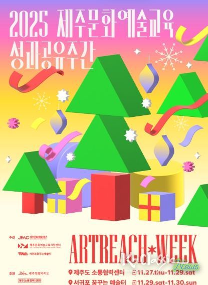 K-Classic News 기자 | 제주문화예술재단은 오는 27일부터 30일까지 4일간 제주도 소통협력센터(제주시 관덕로 44)와 서귀포 꿈꾸는 예술터(서귀포시 천제연로 164)에서 2025년 제주문화예술교육 성과를 도민에게 공유하는 문화예술교육 축제인 '아트리치위크'를 운영한다.