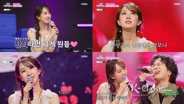 전유진은 지난 25일 밤 방송된 MBN ‘한일톱텐쇼’에 출연했다. 이날 방송은 ‘아찔한 SONG개팅’을 주제로 출연자들의 데이터를 참고해 듀엣 조합을 매칭하는 방식으로 진행됐다.