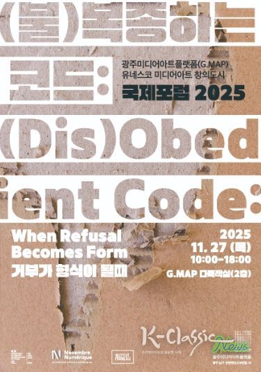 K-Classic News 기자 | 광주광역시는 27일 광주미디어아트플랫폼(G.MAP)에서 ‘(불)복종하는 코드(Dis)Obedient Code)’ 국제포럼을 열고, 인공지능 시대 기술권력의 확장 속에서 예술·철학이 제시할 새로운 윤리와 대응 방안을 논의한다.