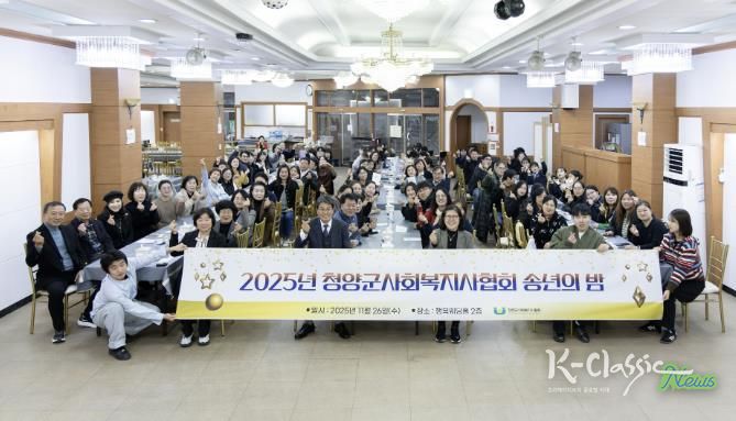 K-Classic News 기자 | 청양군은 지난 26일 청양읍 행복웨딩홀에서 ‘2025 청양군 사회복지사협회 송년의밤’ 행사가 성황리에 열렸다고 밝혔다. 이번 행사는 청양군사회복지사협회가 주관해 지역 사회복지사들이 한 해를 마무리하며 서로를 격려하고 재충전하는 자리가 마련됐다.