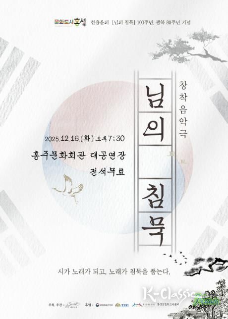 K-Classic News 기자 | 홍성군은 오는 16일 오후 7시 30분, 홍주문화회관 대공연장에서 창작음악극 ‘님의침묵 : 시가 노래가 되고, 노래가 침묵을 품는다’을 선보일 예정이다.