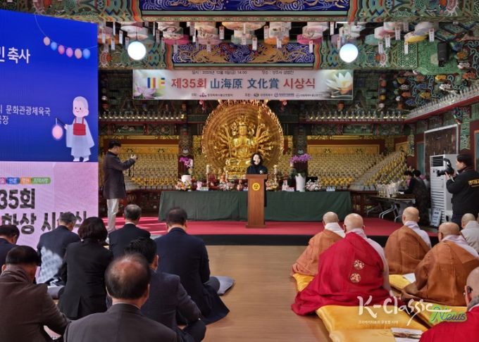 K-Classic News 기자 | 창원특례시는 제35회 산해원 문화상 시상식이 5일 성주사 설법전에서 엄숙하면서도 따뜻한 분위기 속에 열렸다고 밝혔다.