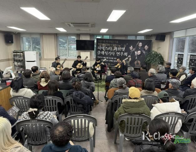 K-Classic News 기자 | 충북 단양군 어상천면 삼태산문화센터에서 지난 6일 열린 ‘피에스타 콰르텟 클래식 기타 연주회’가 겨울 초입의 고즈넉한 시골 마을에 따뜻한 울림을 전했다.