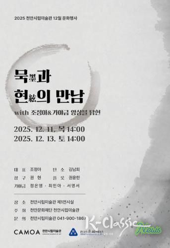 K-Classic News 기자 | 천안시립미술관은 오는 11일과 13일 ‘묵과 현의 만남 with 조정아&가야금 앙상블 담현’ 공연을 선보인다고 9일 밝혔다.