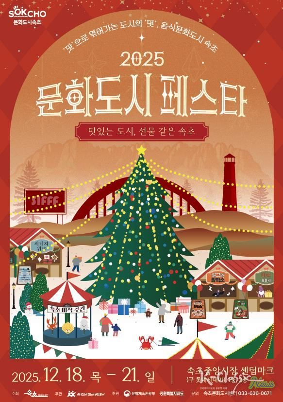 K-Classic News 기자 | (재)속초문화관광재단은 속초시의 대한민국 문화도시 1년 차 사업을 마무리하며 오는 12월 18일부터 21일까지 4일간 속초중앙시장 센텀마크(구 롯데시네마) 에서 대한민국 문화도시 성과공유회‘2025 문화도시 페스타’를 개최한다.