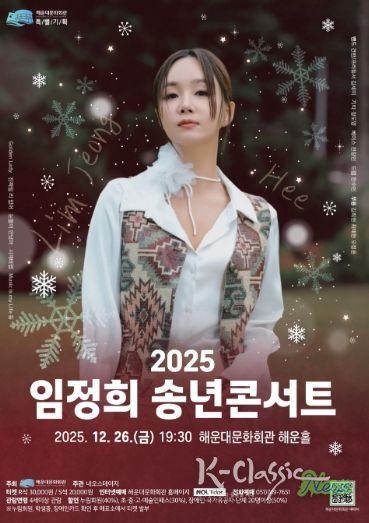 K-Classic News 기자 | 해운대문화회관은 오는 12월 26일 오후 7시 30분, 해운대문화회관 해운홀에서 송년 특별기획 공연인 ‘2025 임정희 송년콘서트’를 개최한다.