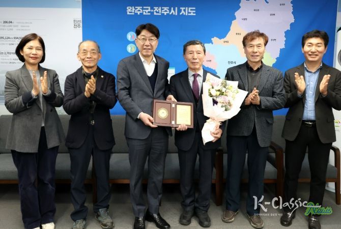 K-Classic News 기자 | 전주시는 23일 전주시장실에서 임기 만료를 앞둔 최인열 전주향교 제30대 전교에게 그간의 노고에 감사의 뜻을 담은 감사패를 수여했다.