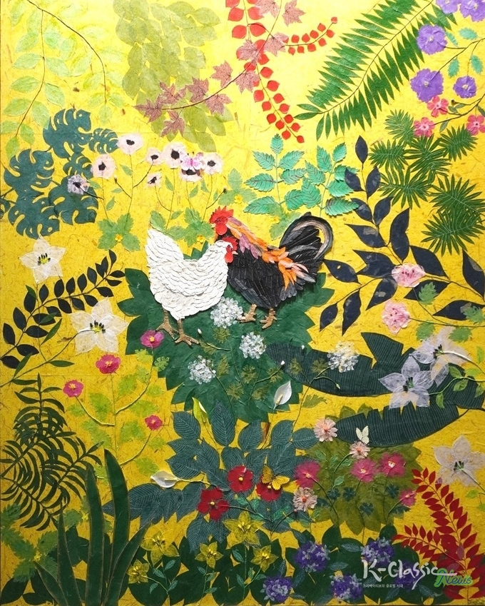 서은진의 작품 세계를 관통하는 핵심 키워드는 한지, 전통성, 그리고 평온함이다. 그의 화면에는 닭과 새, 숲과 나비 같은 자연과 생명성을 상징하는 존재들이 반복적으로 등장한다. 이들은 단순한 장식적 요소가 아니라, 인간의 삶과 정서를 은유적으로 드러내는 상징적 장치로 기능한다. 특히 닭과 새는 길상(吉相)의 의미를 지닌 존재로, 전통 자수와 민화에서 오랫동안 사랑받아 온 소재다.