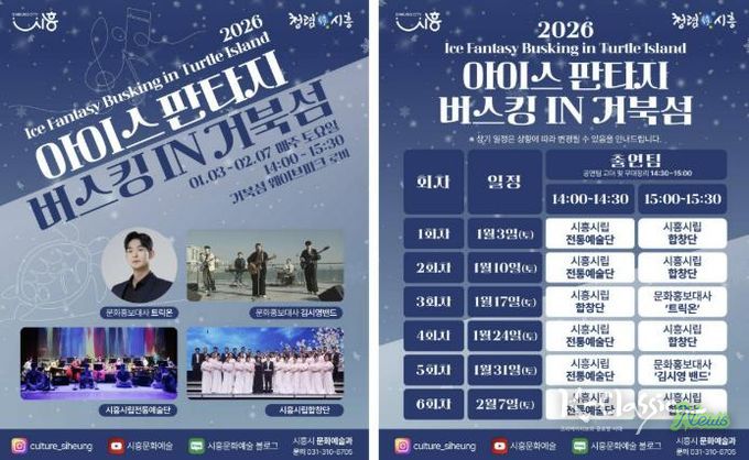 K-Classic News 기자 | 시흥시는 지난 연말에 진행된 ‘2025 시흥 사운드 오브 윈터’의 열기를 잇는 후속 문화예술 프로그램으로, 겨울철 거북섬을 찾는 시민과 관광객에게 풍성한 즐길 거리를 제공하고자 ‘2026 아이스 판타지 버스킹 인 거북섬’을 운영한다.