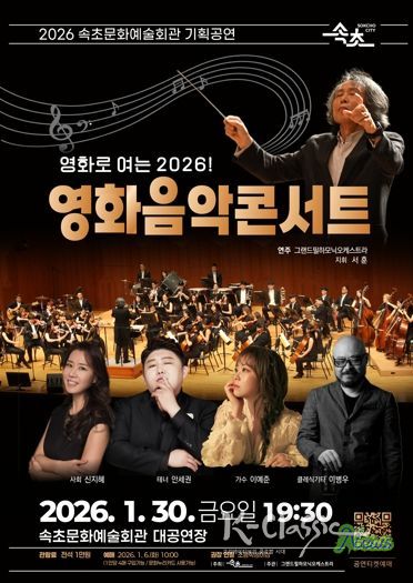 K-Classic News 기자 | 속초시가 2026년 새해를 맞아 1월 30일 오후 7시 30분, 속초문화예술회관 대공연장에서 ‘영화로 여는 2026! 영화음악콘서트’를 개최한다.