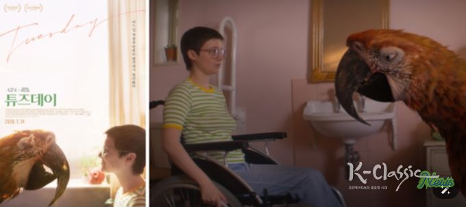 먼저 삶과 죽음에 관한 독특한 시선을 담은 영화 '튜즈데이'는 불치병에 걸린 ‘튜즈데이’와 점점 다가오는 딸의 죽음을 거부하는 엄마 ‘조라’ 앞에 모든 죽어가는 존재의 마지막 순간을 배웅하는 앵무새 ‘죽음’이 나타나며 벌어지는 A24 X BBC FILM의 독특한 휴먼 감동 판타지이다.