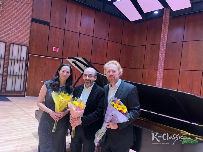 A.제가 한국에 있을때부터 활동한 트리오 팀이 CM 트리오인데 첼로 김지연, 바이올린 김세영 그리고 저까지 세명이 서울예고 친구입니다. 예술의 전당 등 국내 연주는 물론 중국과 제가 가르치는 미국 Universityof Wisconsin -River Falls 초청 연주회도 한 팀이에요. 이 CM 트리오가 법원 교육원 초청을 받아 법원 신입 공무원 500여명이 지켜보는 가운데 피아졸라 사계 등을 연주했는데 우뢰와 같은 함성과 기립박수를 받았습니다.