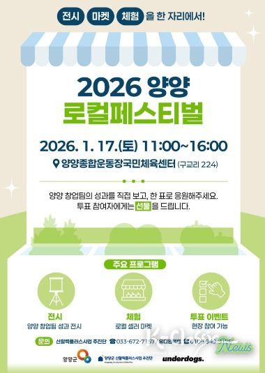 K-Classic News 기자 | 양양군은 오는 1월 17일 오전 11시부터 오후 4시까지 양양종합운동장 국민체육센터에서 『신활력 창업도약 2026 양양 로컬페스티벌』을 개최한다.