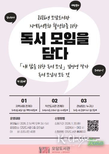 K-Classic News 기자 | 김포시 모담도서관은 독서 모임을 주제로 2월 5일 목요일 오후 3시부터 5시까지 저자 강연을 운영한다.