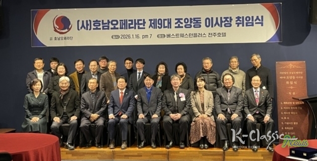 (사)호남오페라단 제9대 조양동 이사장 취임식이 2026년 1월 16일 베스트웨스턴플러스 전주 호텔에서 성대하게 거행되었다. 호남오페라단의 고문, 법인이사, 운영이사 및 여러 내외빈등 70여명이 참석하였다.