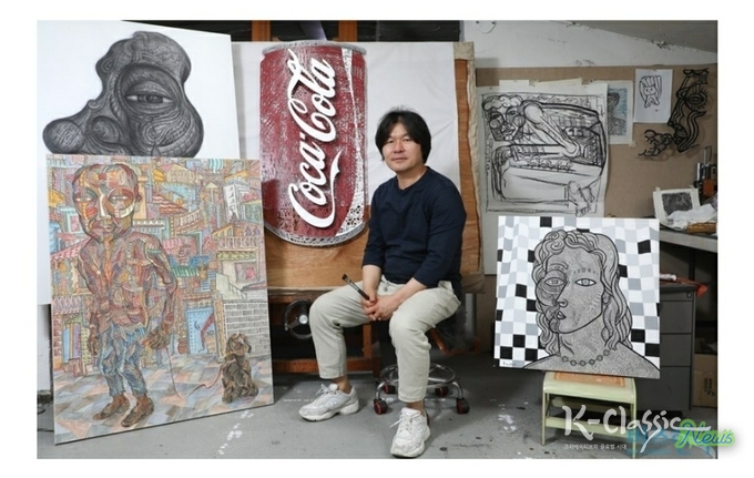 특히 표면을 가득 채운 복합적인 패턴과 선들은 도시의 구조, 축적된 기억, 혹은 소비와 이동의 흔적을 연상시키며, 일상의 기호가 어떻게 하나의 추상적 풍경으로 전환될 수 있는지를 보여준다. 제목이 '무제'로 남겨진 것은 특정한 의미를 규정하기보다, 관람자가 각자의 경험과 시선을 투시할 수 있는 열린 해석의 장을 마련한다.