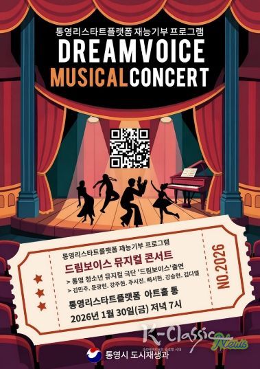 K-Classic News 기자 | 통영시는 오는 30일 저녁 7시 통영리스타트플랫폼 1층 아트홀 통에서 통영리스타트플랫폼 재능기부 프로그램 ‘드림보이스 뮤지컬 콘서트’를 개최한다.