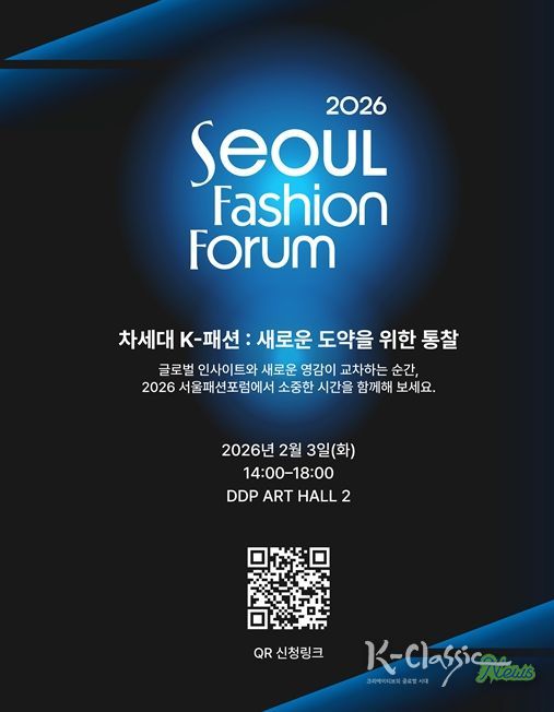 지난해에 이어 두 번째로 마련된 ‘2026 서울패션포럼’은 2월 3일 DDP 아트홀 2관에서 개최된다. ‘차세대 K-패션: 새로운 도약을 위한 통찰(The Next Chapter of K-fashion: Deep Dive & Inspiring)’을 주제로 열리는 이번 포럼은 국내외 패션 산업 관계자와 미디어를 중심으로 약 300명이 참여하며, 일부 세션은 퍼블릭 세션으로 구성해 산업 담론을 시민과 공유한다.