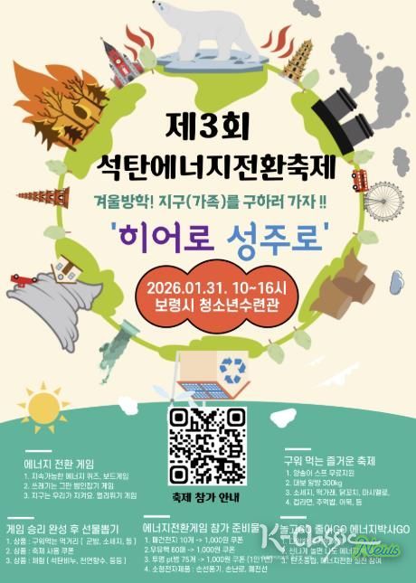 K-Classic News 기자 | 보령시가 주최하고 성주면 개화1리마을회가 주관하는 ‘제3회 겨울방학 석탄 에너지전환 축제’가 오는 1월 31일 오전 10시부터 오후 4시까지 보령시청소년수련원 일원에서 개최된다.