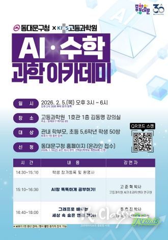 K-Classic News 기자 | 서울 동대문구가 겨울방학을 맞아 홍릉에 자리한 고등과학원(KIAS)과 손잡고 ‘AI·수학 과학아카데미’를 연다. 아이 혼자 ‘학원’으로 향하는 대신, 부모와 함께 강연장을 찾아 같은 내용을 듣고 집으로 돌아가는 길에 자연스럽게 대화를 이어가게 하는 ‘가족 소통형’ 프로그램이다.
