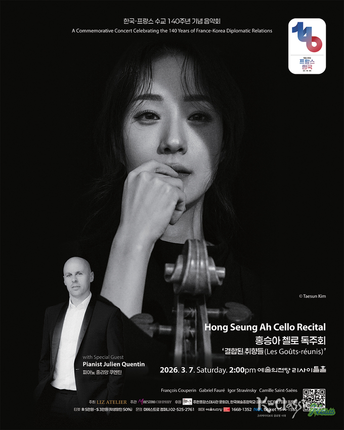 K-Classic News 오형석 기자 |프랑스 음악을 관통하는 미학은 화려함보다 균형에 가깝다. 감정을 노골적으로 분출하기보다는 절제 속에서 깊이를 축적하고, 기교를 앞세우기보다 구조와 색채의 조화를 중시한다. 오는 3월 7일 예술의전당 리사이틀홀에서 열리는 한·불 수교 140주년 기념 음악회 '결합된 취향들(Les Goûts-réunis)'은 바로 그 프랑스 음악의 미학을 첼로라는 악기를 통해 집중 조명하는 무대다.