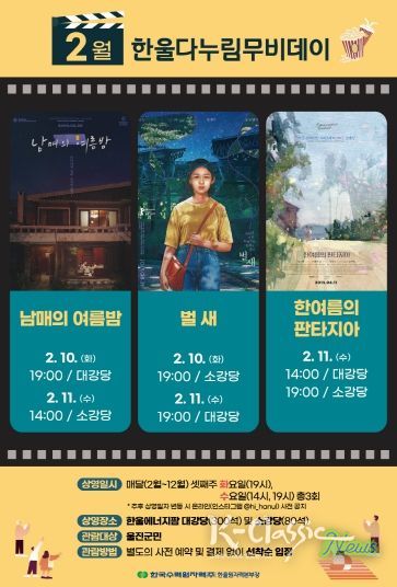 2월에는 ‘청춘과 성장’을 주제로 독립영화 '남매의 여름밤', '벌새', '한여름의 판타지아'를 상영할 예정이다. 연간 상영 일정 등 자세한 내용은 한울본부 홈페이지 공지 게시판과 인스타그램에서 확인할 수 있으며, 기타 문의는 한울본부 홍보부로 하면 된다.