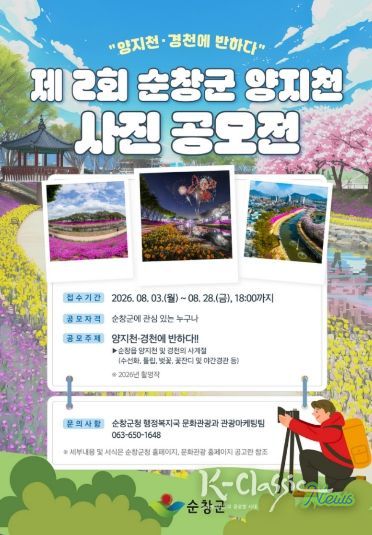 K-Classic News 기자 | 순창군이 지역의 대표적인 자연경관 자원을 전국에 알리기 위해 ‘양지천·경천에 반하다’ 제2회 순창군 양지천 사진공모전을 개최한다.