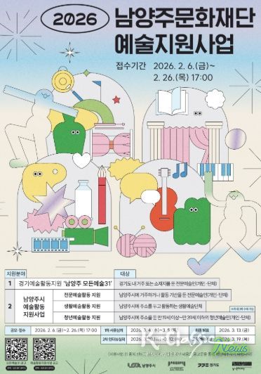 K-Classic News 기자 | 남양주시는 6일 남양주문화재단이 지역 예술인의 안정적인 창작 환경 조성과 시민 문화향유 기회 확대를 위해 ‘2026년 예술활동 지원사업 공모’를 추진하고, 오는 26일까지 접수를 진행한다고 밝혔다.