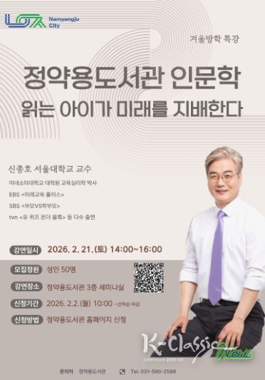K-Classic News 기자 | 남양주시는 오는 2월 21일 정약용도서관 3층 세미나실에서 겨울방학 인문학 특강 ‘읽는 아이가 미래를 지배한다’를 개최한다고 9일 밝혔다.