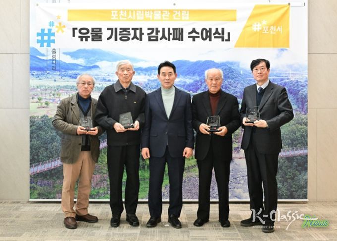 K-Classic News 기자 | 포천시는 12일 시장 집무실에서 '2026년 제1차 포천역사문화관 유물 기증자 감사패 수여식'을 개최했다.