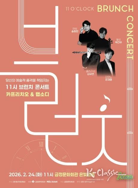 K-Classic News 기자 | 부산 금정구 금정문화회관 은빛샘홀에서 펼쳐질 2026년 2월 브런치 콘서트는 ‘카프리치오 & 랩소디’란 특별한 주제로 관객들을 찾아온다.