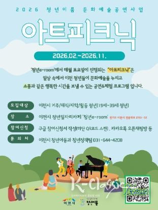 K-Classic News 기자 | 이천시 청년일자리카페(이천시 경충대로 2701-32)는 지역 청년들에게 일상의 쉼표와 성장의 기회를 제공하는 ‘청년이룸 문화예술공연 사업’을 본격적으로 운영한다고 밝혔다.