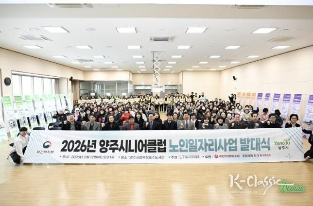K-Classic News 기자 | 양주시가 지난 12일 옥정호수도서관 3층 예술극장에서 양주시니어클럽 주관으로 ‘2026년 노인일자리 및 사회활동지원사업 발대식’을 개최했다. 이날 행사에는 노인일자리 참여 어르신과 관계자 등 180여 명이 참석해 성황을 이뤘다.