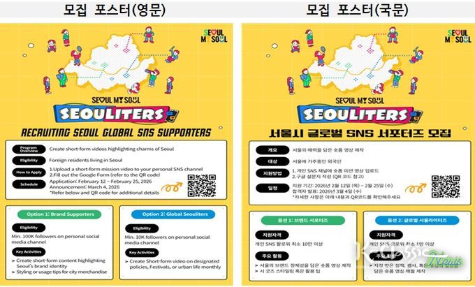 K-Classic News 기자 | 서울시는 서울의 다양한 모습을 외국인 시각으로 소개하는 2026년 글로벌 SNS 서포터즈 ‘서울라이터즈(Seouliters)’ 3기를 2월 12일부터 25일까지 모집한다고 밝혔다.