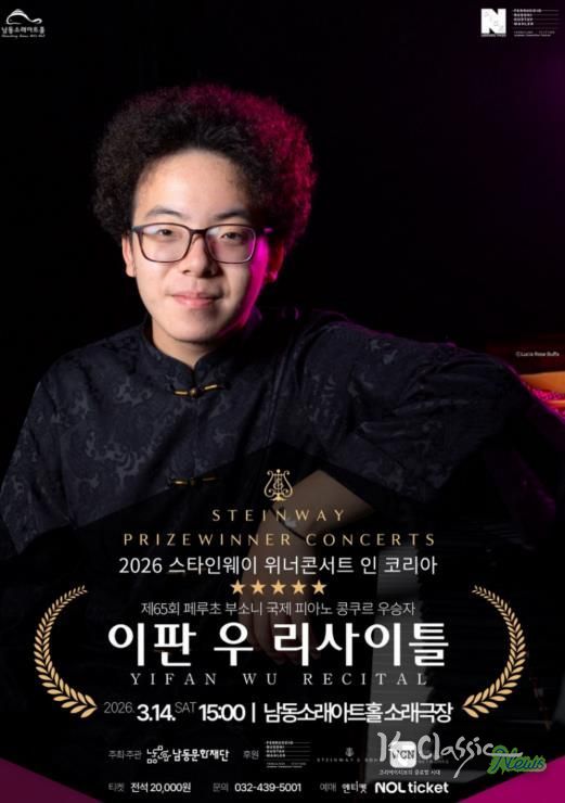 K-Classic News 기자 | 인천시 남동구 남동문화재단은 제65회 페루초 부소니 국제 피아노 콩쿠르 우승자인 이판 우(YIFAN WU)의 피아노 리사이틀 공연을 남동소래아트홀에서 3월 14일 15시에 개최한다고 19일 전했다.