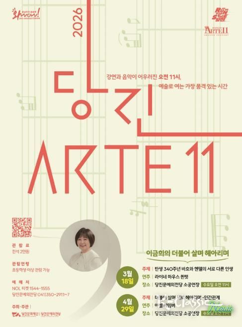 K-Classic News 기자 | (재)당진문화재단·당진문예의전당은 2026년 〈당진Arte 11〉 3월·4월 콘서트를 오는 3월 18일과 4월 29일 오전 11시, 당진문예의전당 소공연장에서 개최한다.
