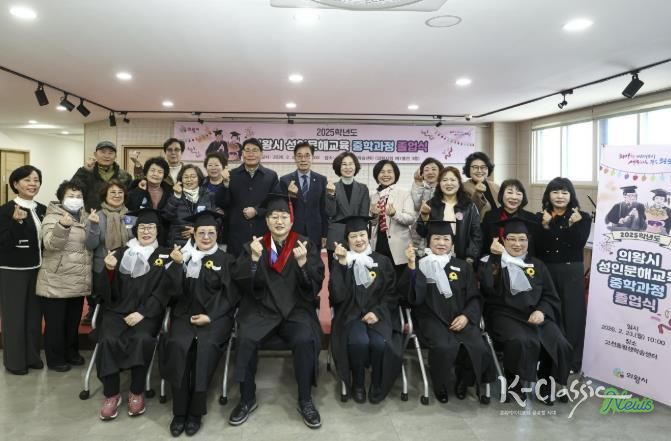 K-Classic News 기자 | 의왕시가 2월 23일 고천동평생학습센터에서 ‘2025학년도 성인문해교육 중학과정 제2회 졸업식’을 개최하며, 배움의 시기를 놓쳤던 어르신들에게 졸업장을 전달했다.