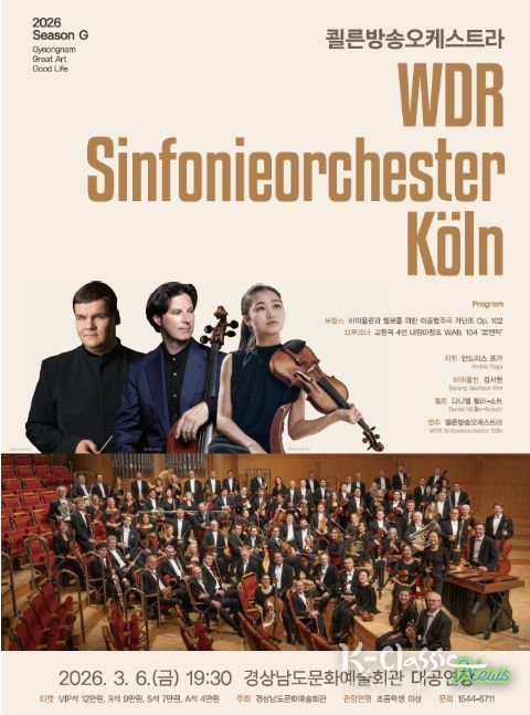 경남문화예술회관 관계자는 “2026 SEASON G 첫 기획공연인 WDR쾰른방송오케스트라 공연은 정통 독일 사운드를 국내에서 만날 수 있는 소중한 기회”라며, “브람스와 브루크너의 명작을 통해 품격 있는 클래식의 진수를 경험하는 특별한 시간이 되길 바란다”고 전했다.